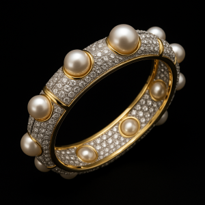 Modern luxury bracelets are incorporating natural and cultured pearls in non-traditional settings — embedded in geometric frames or paired with diamonds and colored gemstones, merging classic elegance with bold design.