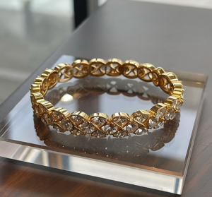 Diamonds, known as the hardest and most brilliant of gemstones, add a dazzling brilliance. When set into gold, they catch the light with every movement, making the bracelet a captivating piece that symbolizes purity, strength, and everlasting love.